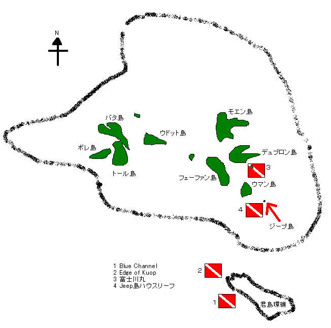 トラック諸島の地図と今回潜ったポイントマップはこちら