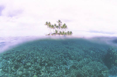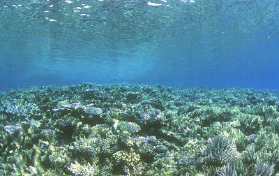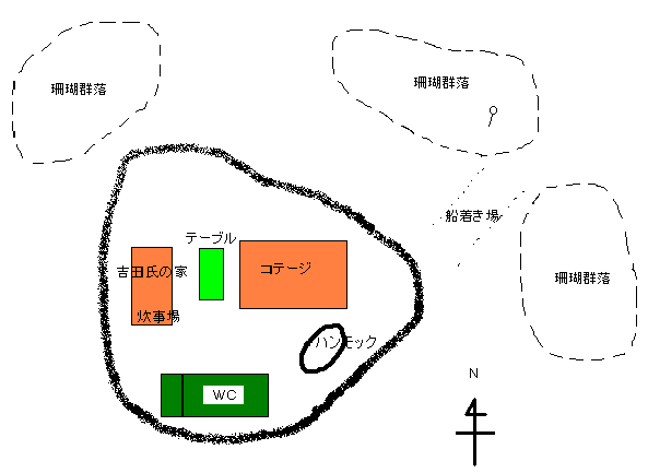 ジープ島の海は、コテージから歩いて約10歩。目の前が海なのである。島の東側と西側には、大きな珊瑚の群落があり、シュノーケリングで十分その美しさを堪能できる。ジープ島の地図はこちら。たまにイルカも島の近くにまで姿を見せるらしい。実際に私の滞在中も、夕方にイルカが数頭100m位沖合いに出没した。魚はやや少な目だが、時折大型のアジなども出現したりする。小型のサメも多い。ボートが停泊する水路になっている砂地には、シマハギの群れやアカヒメジの群れなどがいる。島にはコンプレッサーは無いので、スクーバ・タンクはモエン島から持ってくることになる。前日から予約しておけば島の回りでのんびりゆっくり潜ることが出来る。中には滞在中すべてジープ島のハウスリーフで潜る人もいるらしい(フォト派ダイバーに多い)。
